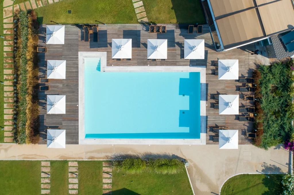 It consists of six luxury suites on the ground floor and six on the upper level, all offering unobstructed views. Directly in front of the suites lies the hotel’s swimming pool and bar, creating an inviting space for relaxation and enjoyment.